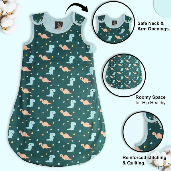 Dino Doodle Baby Swaddles for Newborns | Carry Nest & Wearable Blanket | Cotton Baby Bedding for New Born & Infant | Unisex Baby Sleeping Bag | For 0 to 12 Months (Pack of 1) (GREEN)