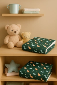 New Born Baby Dino Doodle Stylish Cotton Blanket for Baby boy and Girl | for 0 to 12 Months (Pack of 1) (Green)