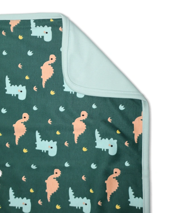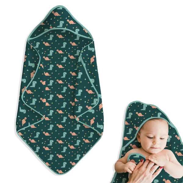 New Born Baby Dino Doodle Stylish Cotton Hooded Blanket for Baby boy and Girl | for 0 to 12 Months (Pack of 1) (Green)