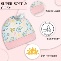 New Born Baby Elephant Stylish Cotton Caps/Mittens/Booties | Cotton Baby Set for Baby boy and Girl (Pack of 3) Pink