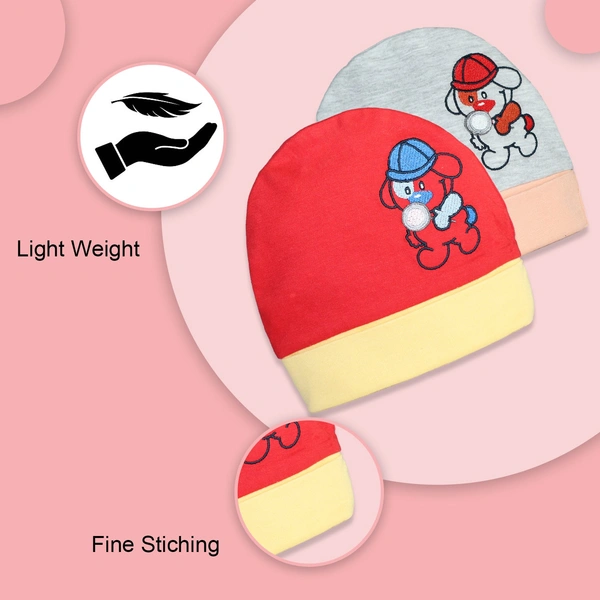 New Born Bubbly Bear Stylish Cotton Caps/Topi/Hats | Cotton Baby Cap for Baby boy and Girl (Pack of 2) (0 to 6, 6 to 12 Months)